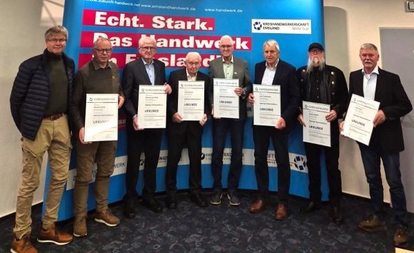 Mit einer feierlichen Veranstaltung im Campus Handwerk am Schwarzen Weg in Lingen ehrte die Kreishandwerkerschaft Emsland Mitte-Süd verdiente Handwerksmeister, die vor 40, 50 oder sogar 70 Jahren ihre Meisterprüfung erfolgreich abgelegt haben. Kreishandwerksmeister Georg Kall begrüßte die Gäste, darunter Jubilare, ihre Familien sowie Vertreter der Innungen, und hob in seiner Rede die außergewöhnliche Lebensleistung der Geehrten hervor.„Sie haben das Handwerk in unserer Region geprägt ... -